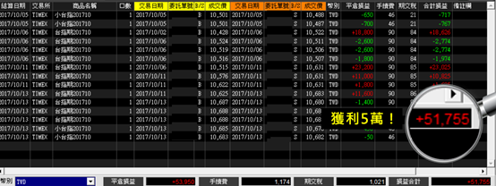 下列除了小台是我自己下的之外,大台是用小明加碼賺波段,真的是令人興奮 !